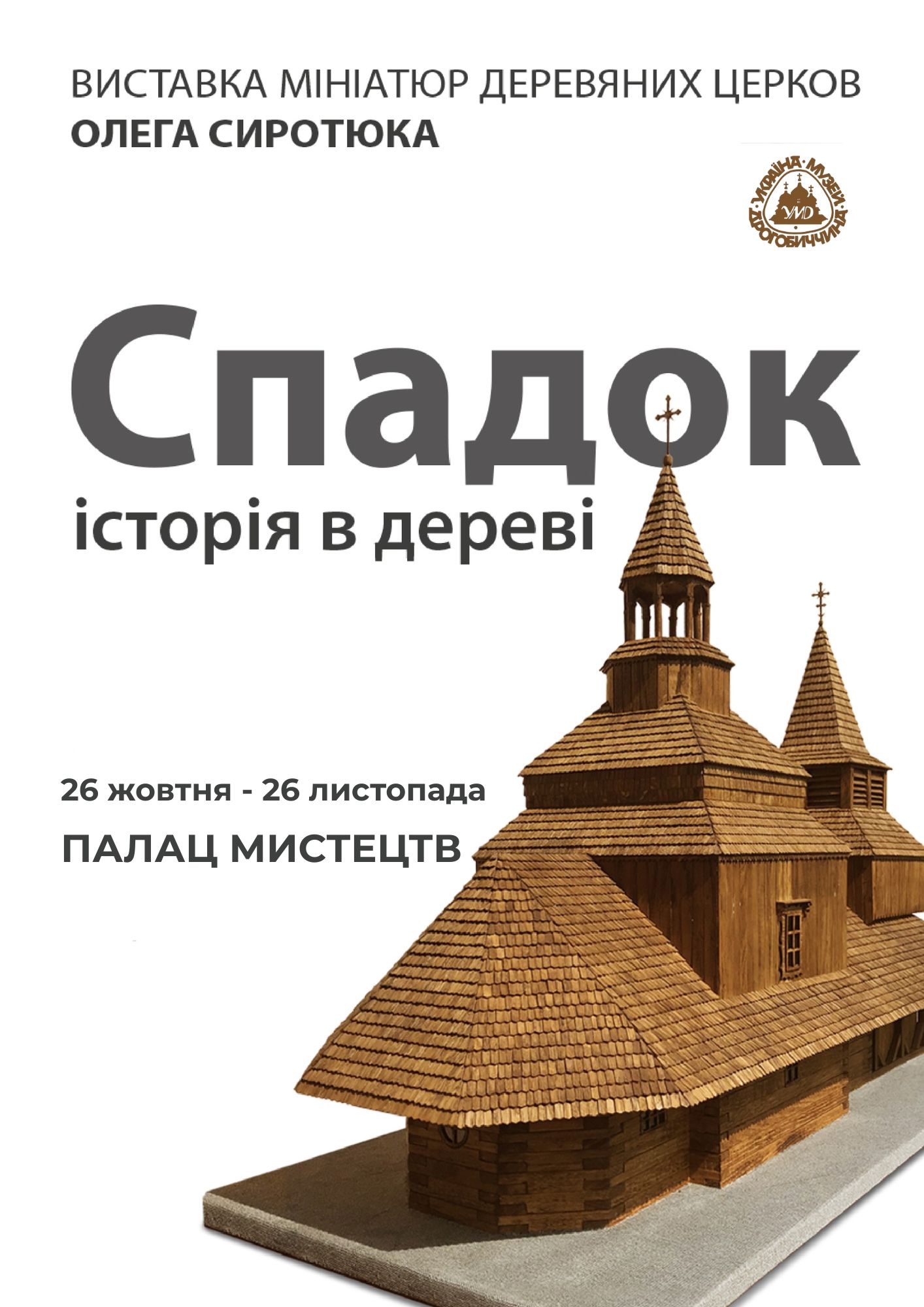 З 26 жовтня розпочнеться виставка мініатюр дерев'яних церков Олега Сиротюка «Спадок. Історія в дереві» у Палаці мистецтв. Про це повідомили у музеї. Коментарі (14) | Переглядів: 349 |