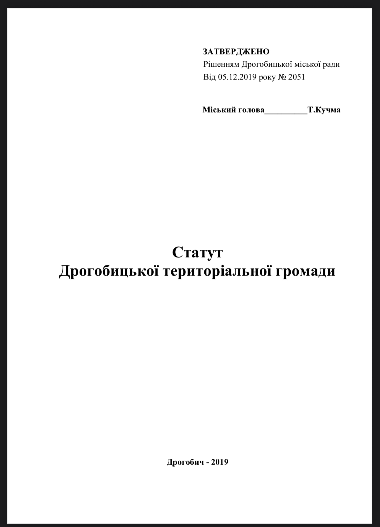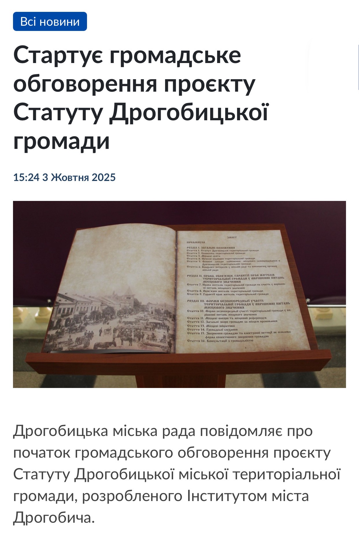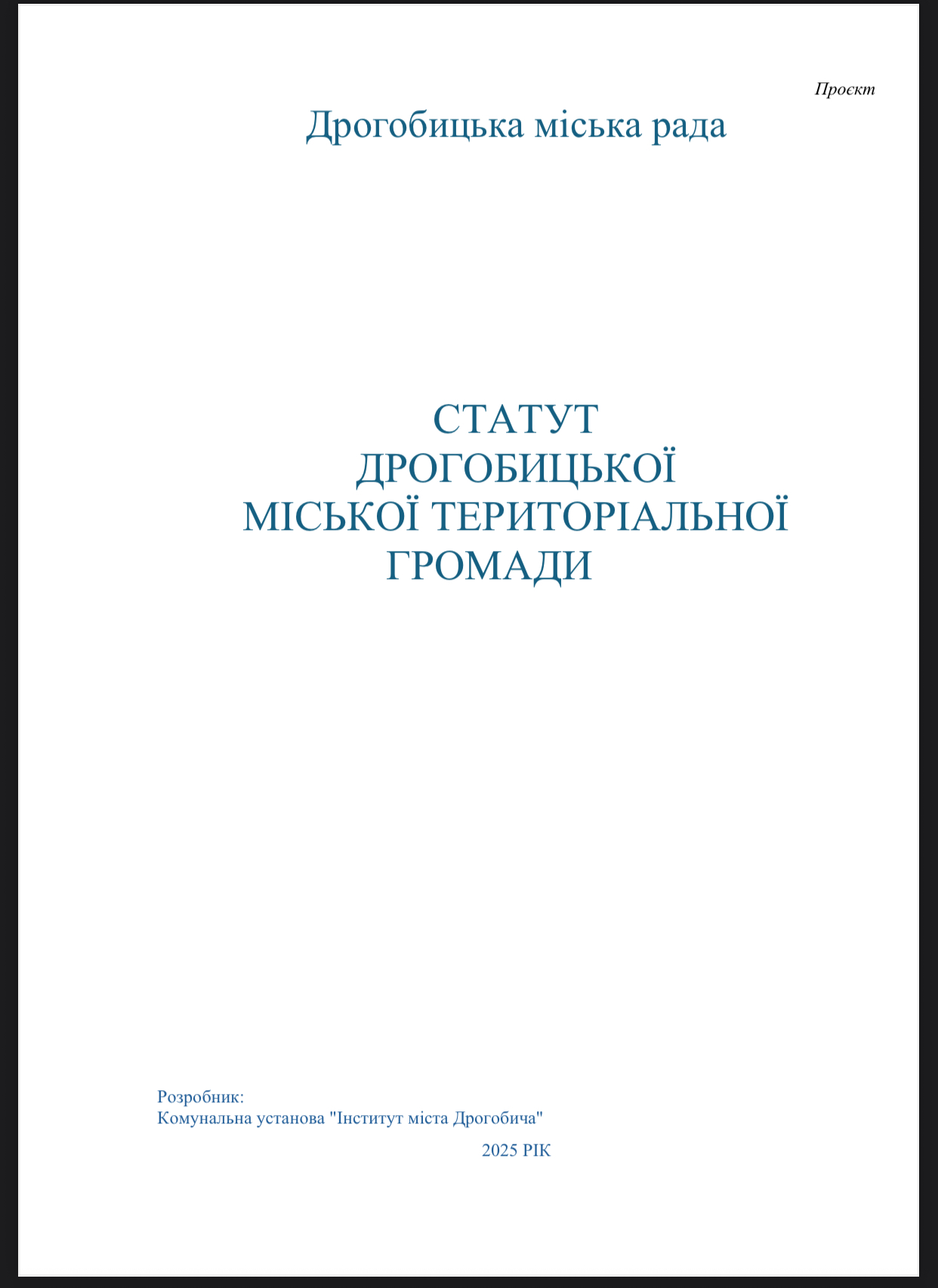 “Стартує громадське обговорення проєкту Статуту Дрогобицької громади.”