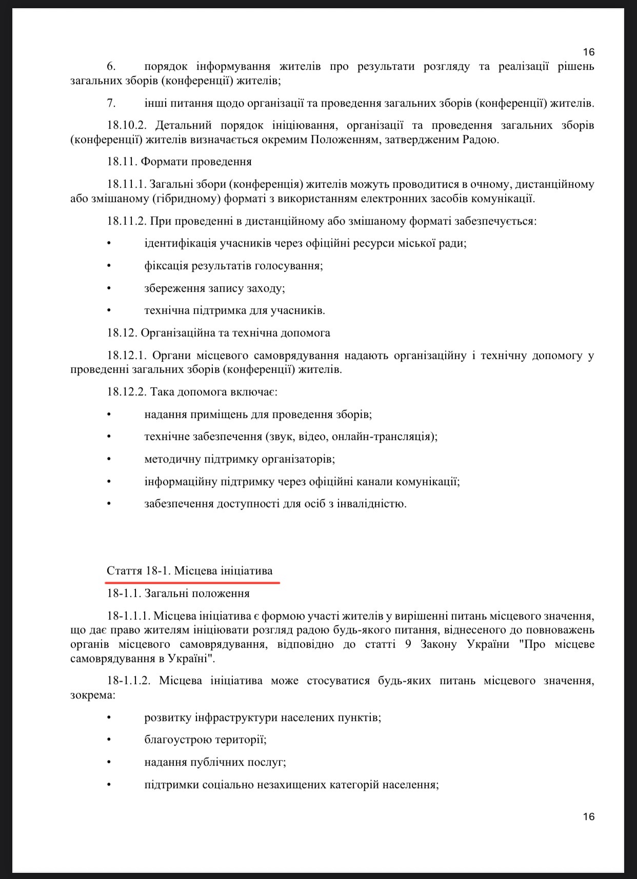 Розділ IV. Форми участі жителів Громади у місцевому самоврядуванні.